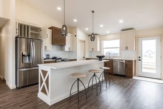 Garage and deck not included. Price subject to change, if options are added or removed during the build. Delivery does not include power and utility fees.
